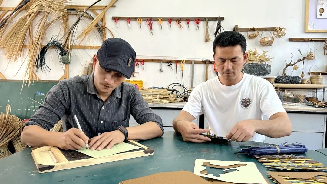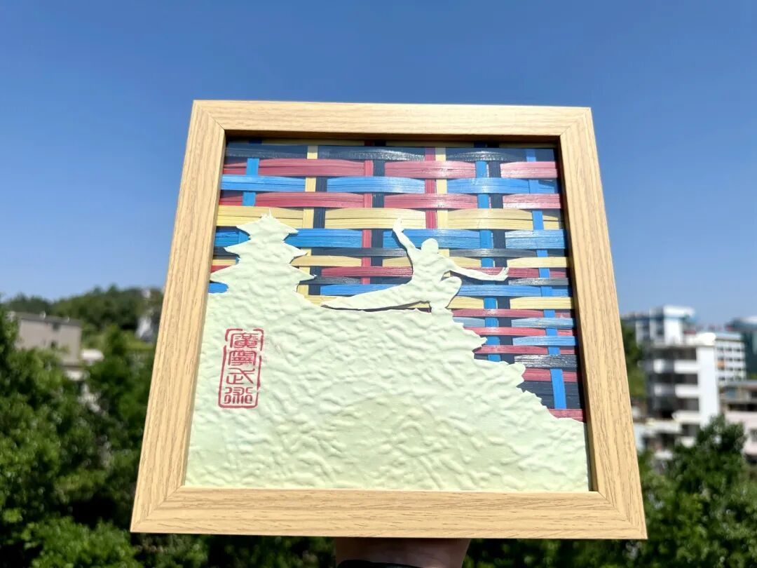 竹编画:竹编艺术工作坊的老师,将广宁三个非遗项目,广宁竹编、广宁武术和广宁剪纸,深度挖掘,有机融合,通过竹编画,生动展现,广宁武术的人物形象。