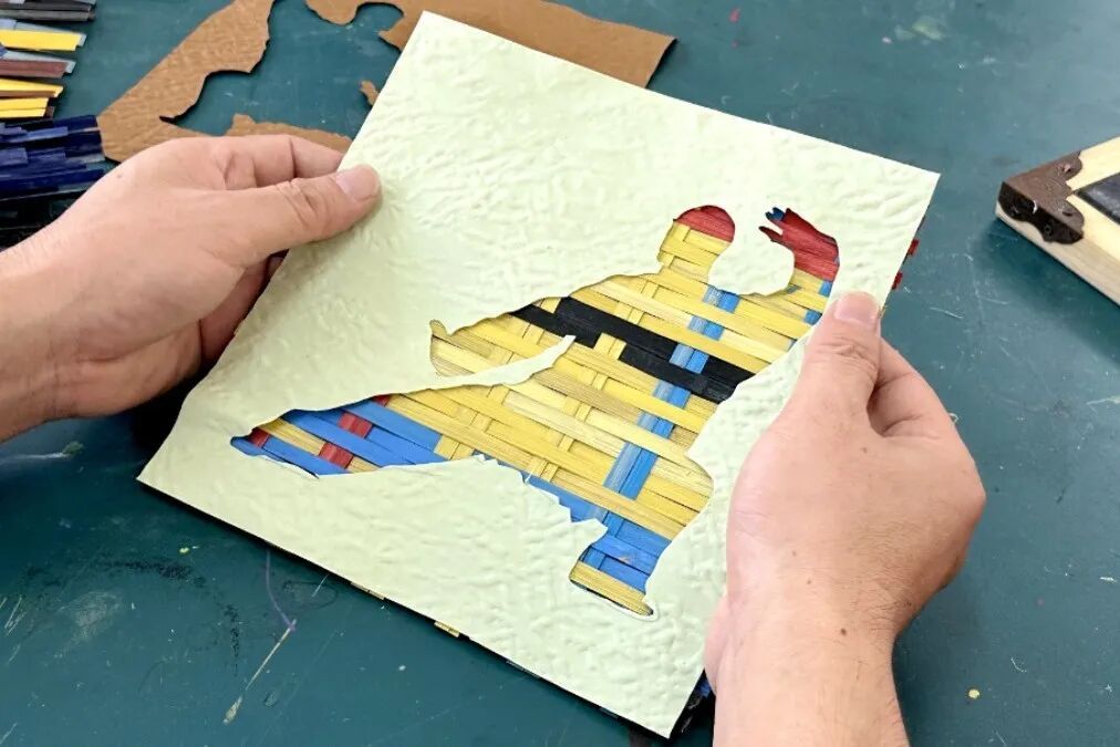 将广宁竹编与武术巧妙结合,并把敦煌壁画的配色精髓融入其中,让原本简洁的作品,拥有了独特的韵味和高级感。竹编与其它传统文化搭配,质朴且充满美感,而竹编材料取自大自然,使人亲近自然,也彰显环保理念。非常适合亲子共同体验。