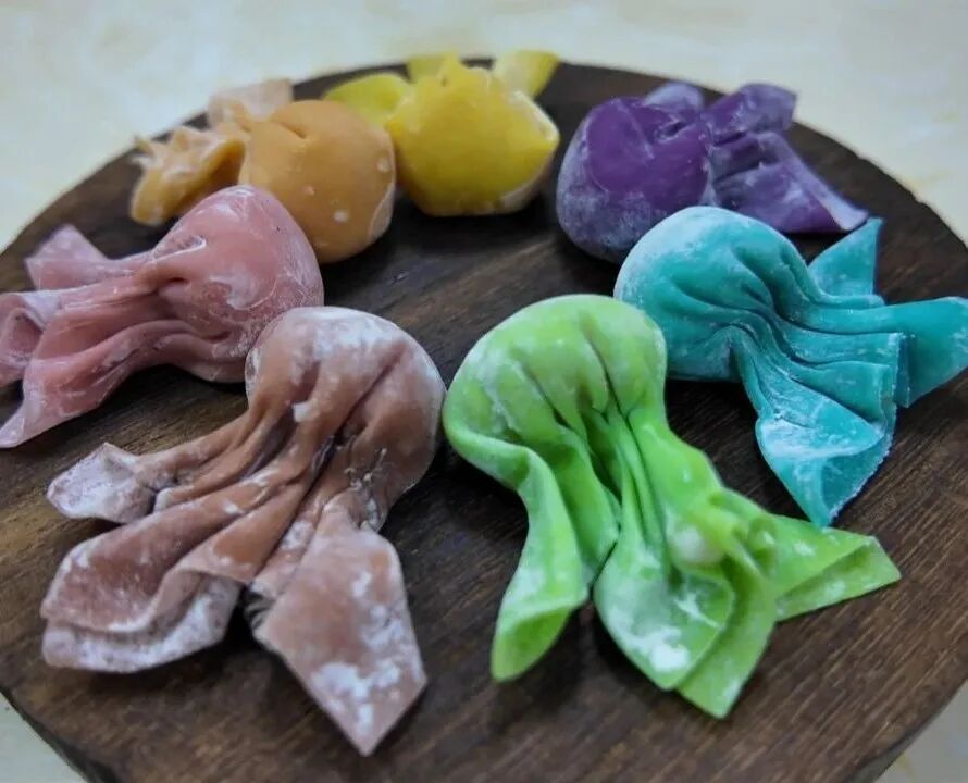 肉馅的口感更是让广宁云吞能在众多美食中脱颖而出“关键所在”。广宁云吞的肉馅采用土猪后腿肉按“三分肥七分瘦”剁细,加少许盐、糖,用擀面杖反复敲打至起胶而成。包的时候用竹签挑起肉馅,往7.5厘米见方的皮中间一放,指尖一捏就成了糖果、元宝等模样。家长可以带着孩子参与云吞包制体验,捏褶子、煮云吞,吃上自己做的美食超有成就感!